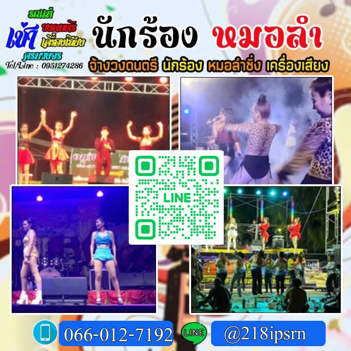 จ้างวงดนตรี..... หมอลำ วงดนตนรีเล่นสด หากท่านกำลังมองหาสิ่งเพิ่มความบันเทิงสนุกสนาน ในงานไม่ว่าจะเป็น งานบวช งานขึ้นบ้านใหม่ งานแต่ง งานเลี้ยง หรืออยากจัด EVENT เราจ้างวงดนตรี..... พร้อมและยินดีให้บริการในทุกๆ สไตล์ วาไรตี้ หมอลำ หมอลำกลอนประยุค งานคอนเสิร์ต วงดนตรีสดขนาดเล็ก (Acoustic Band) วงดนตรีขนาดกลาง (Full Band) วงดนตรีแจ๊ส (Jazz Band) วงดนตรีไทย (Traditional Thai Band) วงดนตรีป๊อปหรือร็อค (Pop/Rock Band) วงดนตรีสตริงคอมโบ (String Combo Band) วงดนตรีใหญ่ (Big Band / Orchestra) ดีเจและวงดนตรี (DJ + Band) ในพื้นที่.....เราให้บริการจ้างวงดนตรี..... วงดนตรีในทุกรูปแบบ งานคุณภาพ งานเรียบหรู ให้บริการควบุคุมพื้นที่..... มีประสบการมากกว่า 10ปี ถ้าต้องการวงดนตรีสดแบบเร่งด่วนติดต่อหาเราได้เลย โทร:066-012-7192 ไน์:@218ipsrn