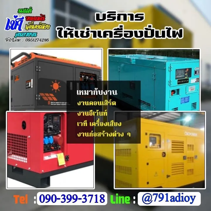 เช่าเครื่องปั่นไฟ..... หากลูกค้าต้องการเช่าเครื่องปั่นไฟในรูปแบบงานต่างเรามี เครื่องปั่นไฟ (generator) เรามีบริการทุกขนาดทั้งขนาดใหญ่ หรือจะเป็นขนาดเล็ก เราก็พร้อมยินดีและให้บริการ เครื่องปั่นไฟ 7.5kw เครื่องเบนซิน เครื่องปั่นไฟ 25 50 60 100 200 250 kva ดีเซล ลูกค้าสามารถเลือกตามขนาดที่ลูกค้าต้องการตามกาารใช้งานกับหน้างานต่างๆตามความเหมาะสมเราให้บริการเช่าเครื่องปั่นไฟ..... เครื่องปั่นไฟทุกรูปแบบ 50 60 100 250 kva ให้บริการควบคุมพื้นที่..... มีประสบการมากกว่า 10 ปี ถ้าต้องการงานเช่าเครื่องปั่นไฟแบบเร่งด่วนติดต่อหาเราได้เลย โทร:090-399-3718 ไน์:@791adioy
